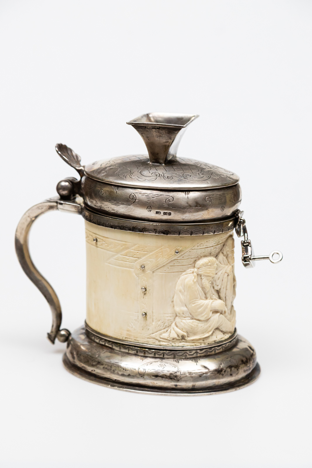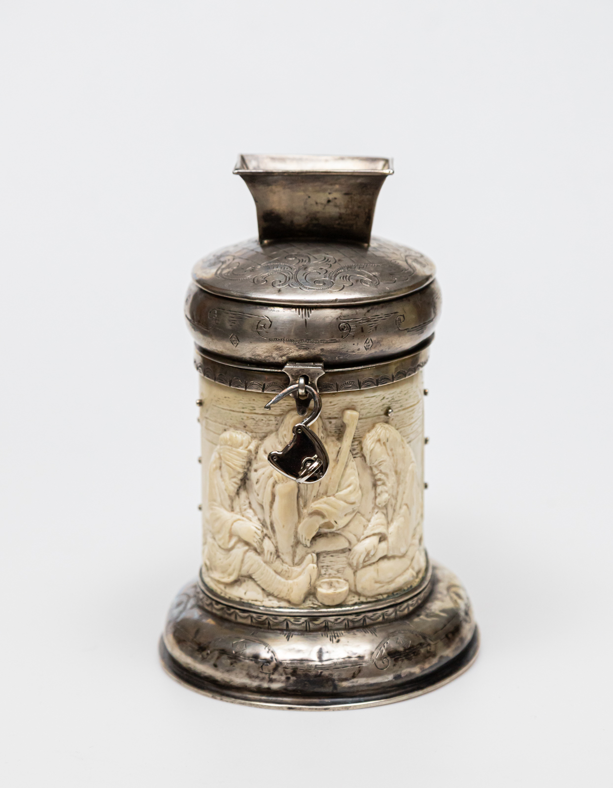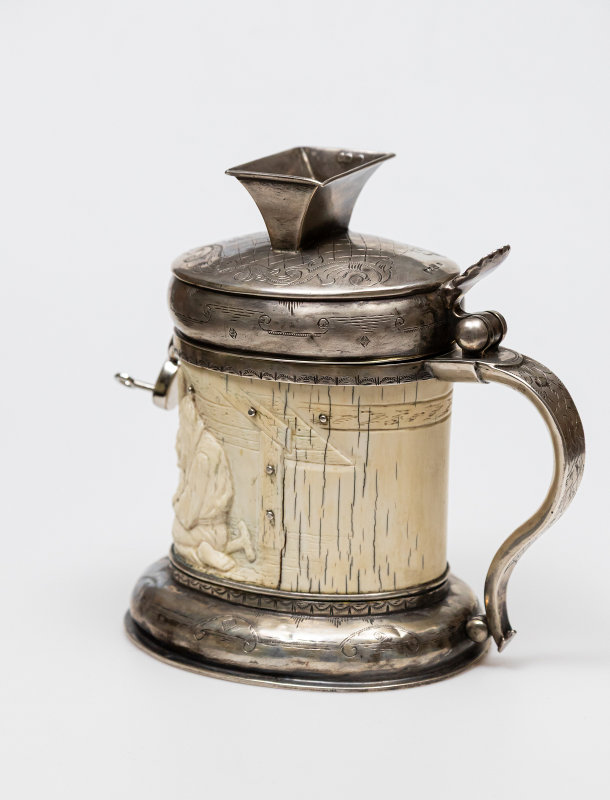 kość w srebrnej oprawie, na kości figuralny relief