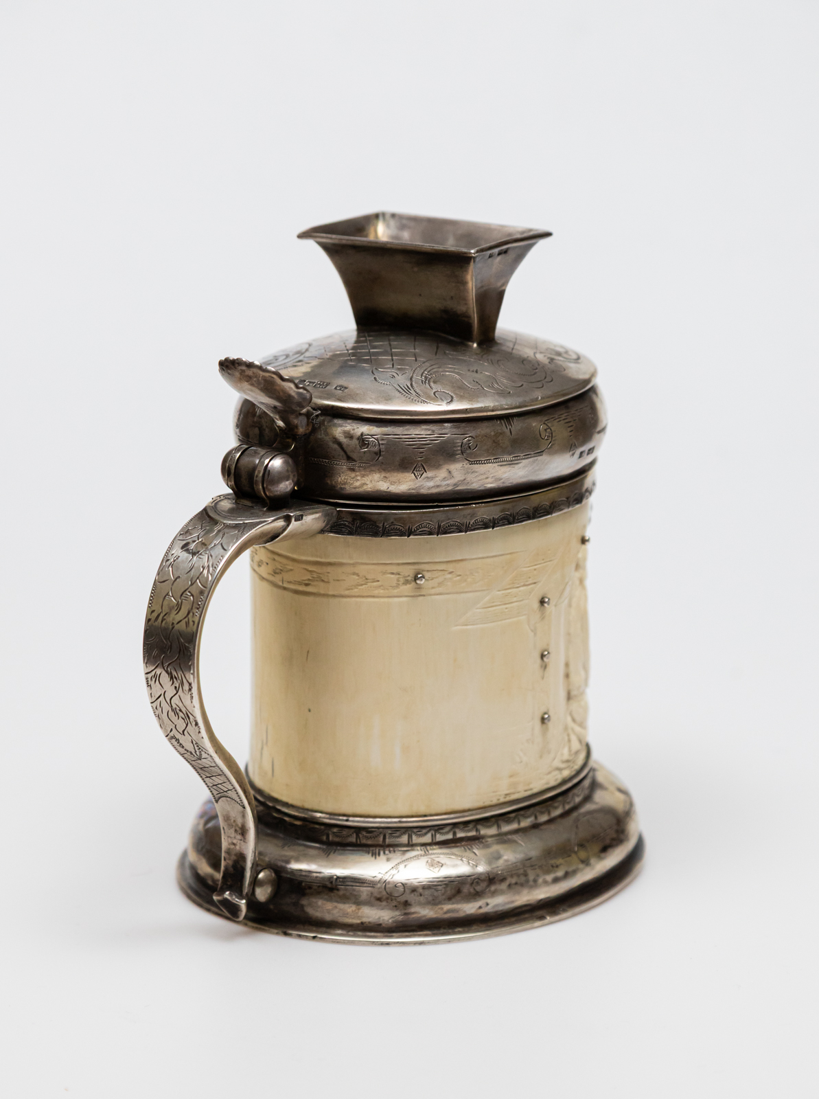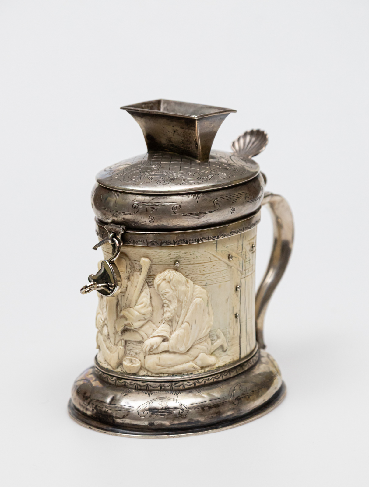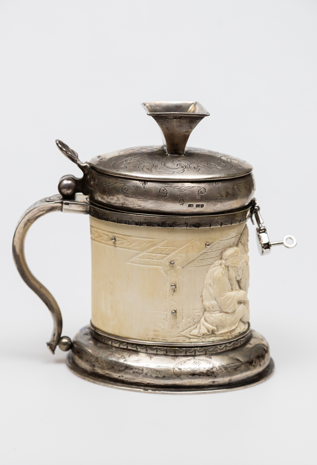 kość w srebrnej oprawie, na kości figuralny relief